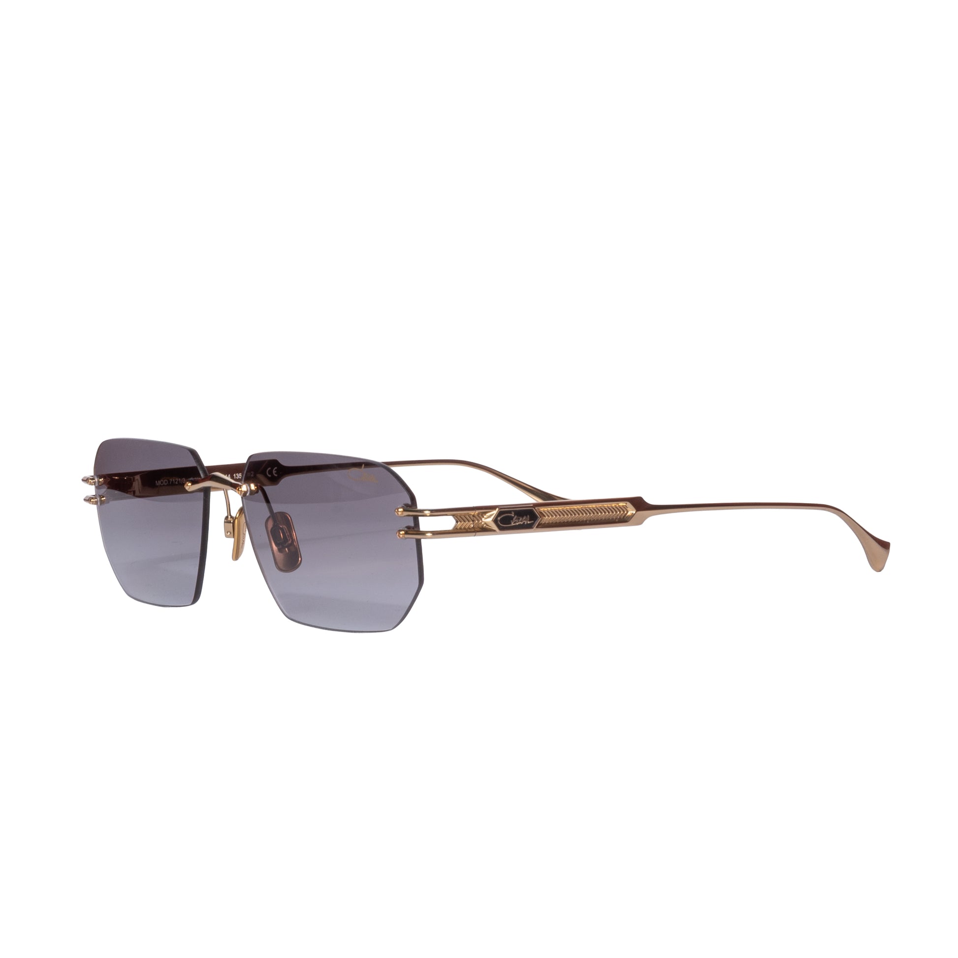 Il Cazal 7121 dal colore oro è un occhiale realizzato a mano in Germania in titanio con lenti color grigio sfumato antiriflesso interno adatte anche al montaggio di lenti correttive o di lenti personalizzate da sole.