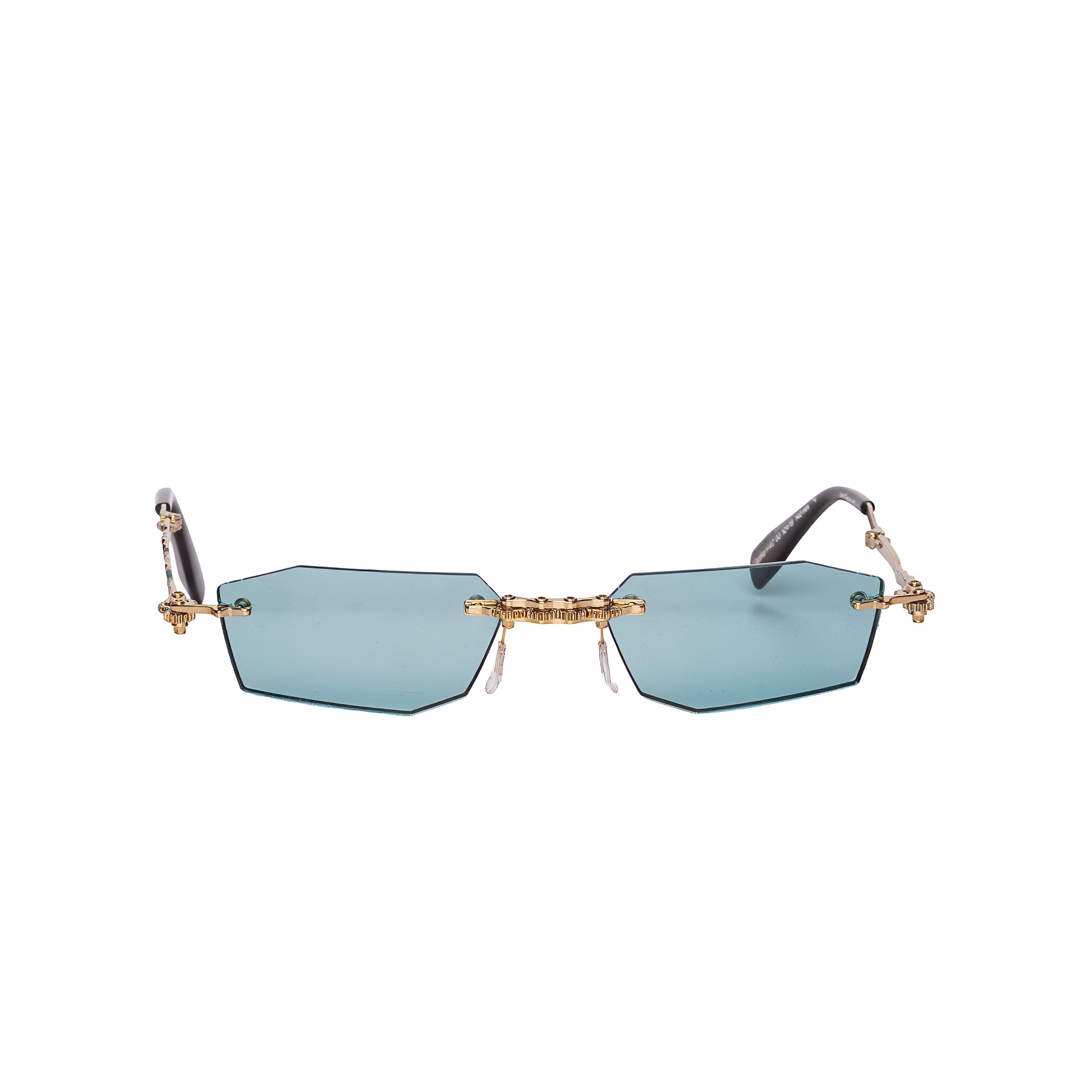 Il Kuboraum Maske H60 dal colore oro è un occhiale realizzato a mano in Italia con lenti blu cobalto antiriflesso interno adatte anche al montaggio di lenti correttive o di lenti personalizzate da sole.