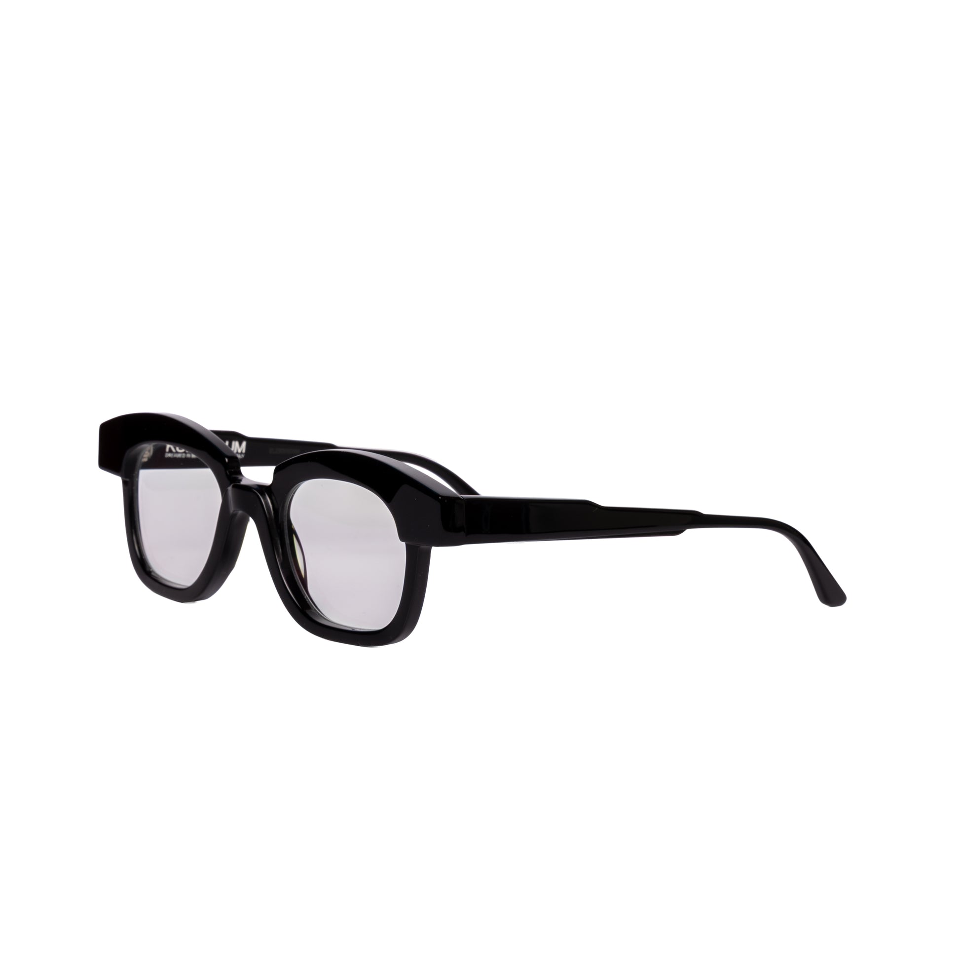 Un' occhiale in acetato nella colorazione nero unisex con lenti antiriflesso interno dalla forma quadrata