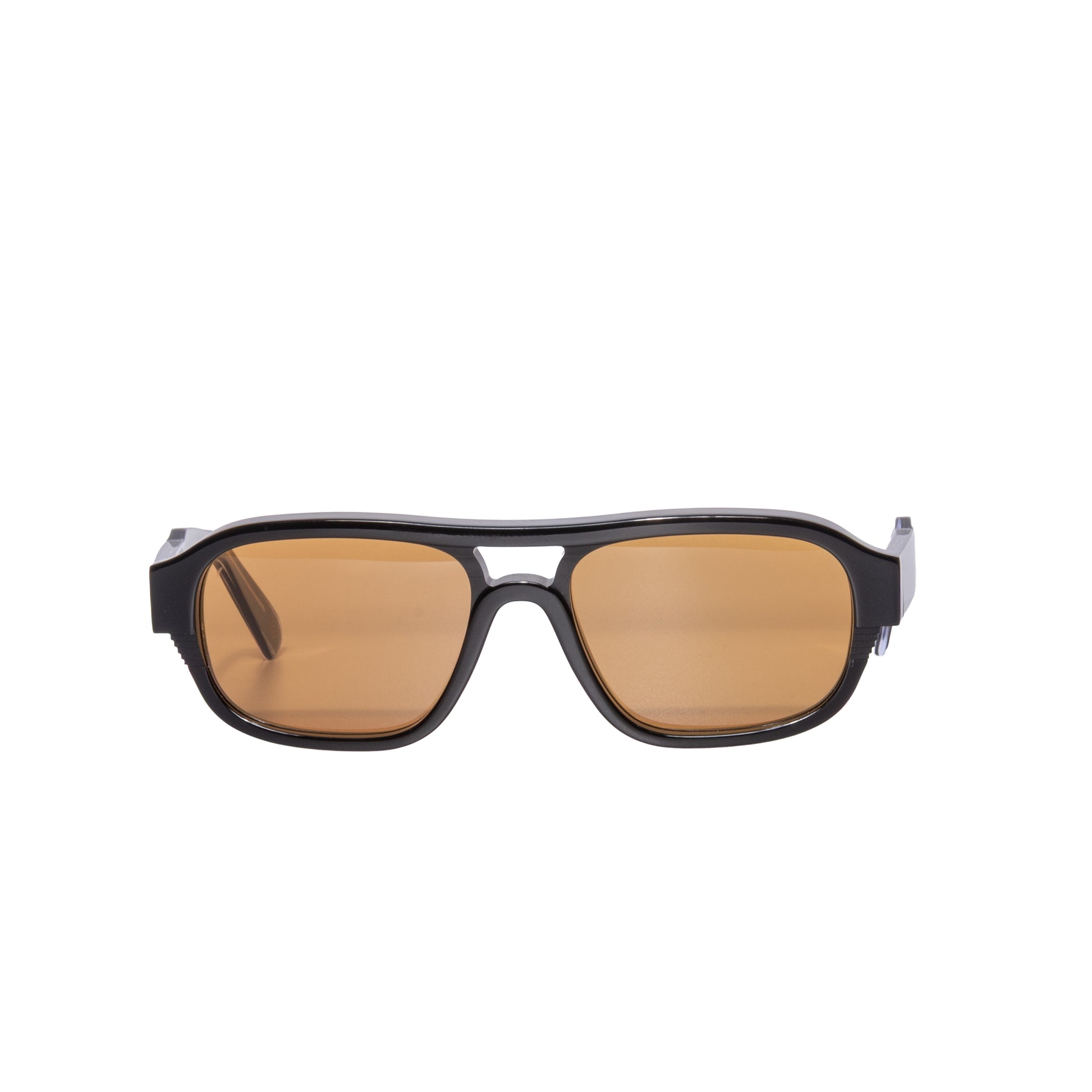 Un'occhiale fatto a mano in acetato nella colorazione nero lucido con lenti color arancio adatte anche alla visione notturna,il modello ha una forma a goccia allungata anni 80 con doppio ponte aste spessorate che lo rende unisex e grazie all acetato Mazzucchelli di prima qualita il modello è molto leggero sul viso.